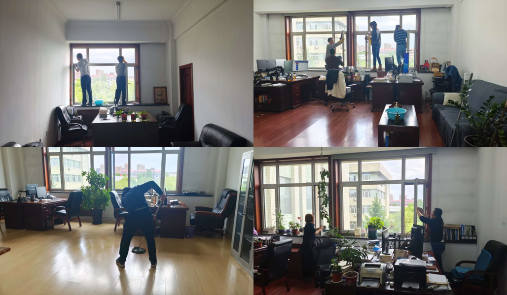 评估中心全体干部职工和教育政策与管理专业硕士研究生,一起对办公室、督导室、研究室和会议室等区域展开全面清洁。重点清理卫生死角,规范文件归档,整理公共书架,同时对办公设备和家具进行除尘消毒。师生们或攀高擦拭门窗,或俯身清理地板缝隙,经过近两个小时劳动,累计擦拭门窗30余扇,桌椅设备等若干台套,清扫地面近200平方米,使办公环境焕然一新。