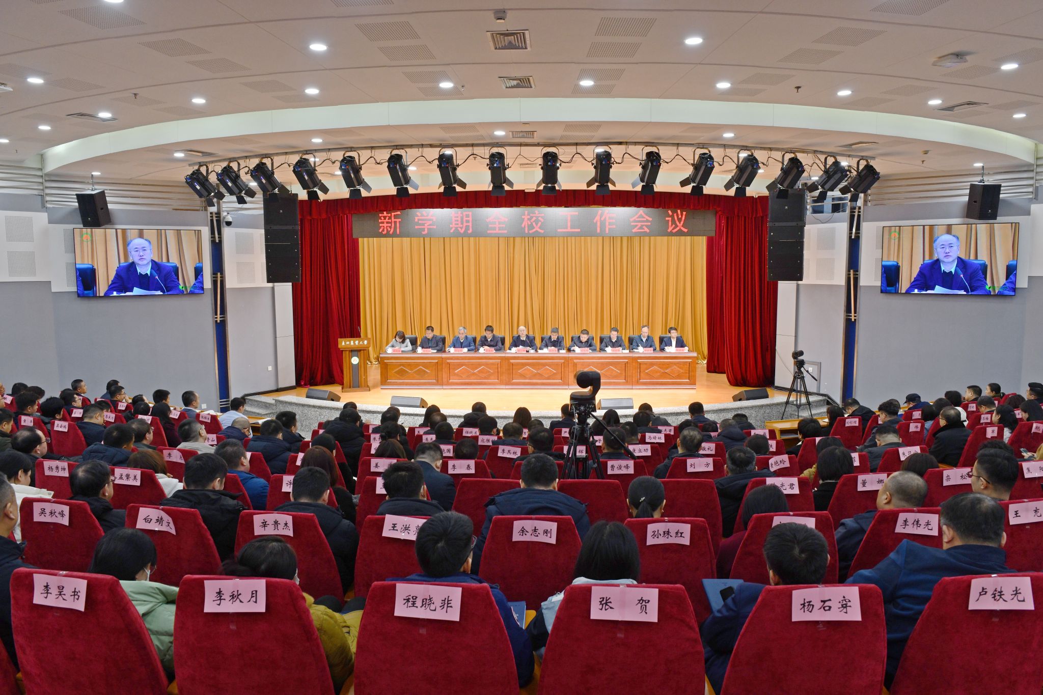 全体校领导,全校正、副处级干部在主会场参会,全校教职工线上收看会议直播。