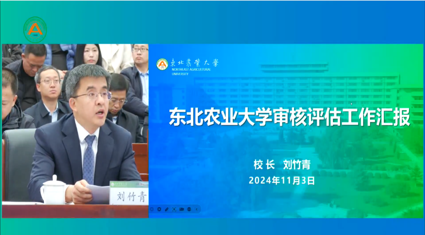 刘竹青从学校基本情况、教学改革与成效、科学研究与社会育人成效、相关数据补充说明等四个方面作了学校本科教育教学审核评估补充汇报。他强调,学校始终坚持立足龙江,面向三农,为国家现代农业和地方区域经济发展提供人才、成果、智力支持。近年来,学校积极深化本科教育教学改革,依托优势学科专业、聚焦“四新”建设,在构建特色育人模式、实施专业优化调整、打造课程建设新高地、搭建高质育人平台、激发教师育人新动能等方面持续发力,取得显著成效。学校以服务国家重大战略需求、支撑北方寒地现代化大农业建设为牵引,加大科学研究支持力度,持续推进成果转化走深走实,助力龙江可持续振兴。他表示,学校将以此次本科教育教学审核评估为契机,进一步巩固人才培养中心地位和本科教育教学核心地位,不断提升学校教育教学质量,培养更多知农爱农、可堪大任的卓越人才。