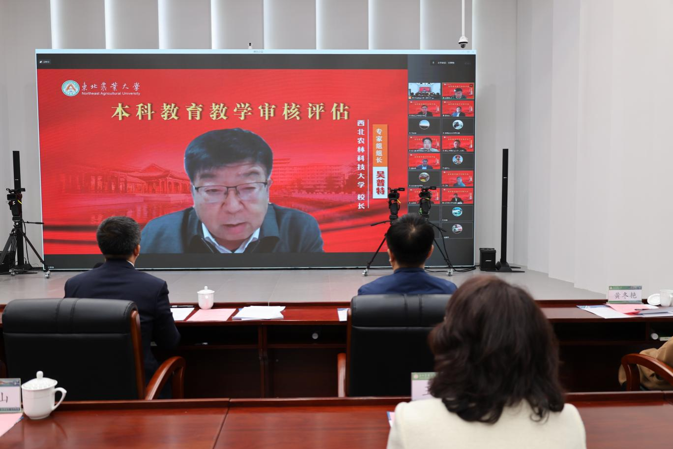 吴普特代表专家组对审核评估精髓要义、工作任务、工作安排和纪律要求进行详细说明。他指出,学校应充分认识新一轮审核评估的变化,把握好评估导向、评估内涵、评估类型和评估方法,深刻理解地方教育行政部门、参评高校和评估专家“质量共同体”的理念。他表示,专家组将严格遵守评估工作纪律,认真履行专家职责,依据审核评估指标,对照审核评估程序,实事求是全面考察,客观评价、坦诚交流,通过此次线上与入校一体化评估,发现东农本科教育教学改革的亮点、特色,挖掘出影响和制约学校改革发展的瓶颈问题,靶向服务东北农业大学高质量发展。