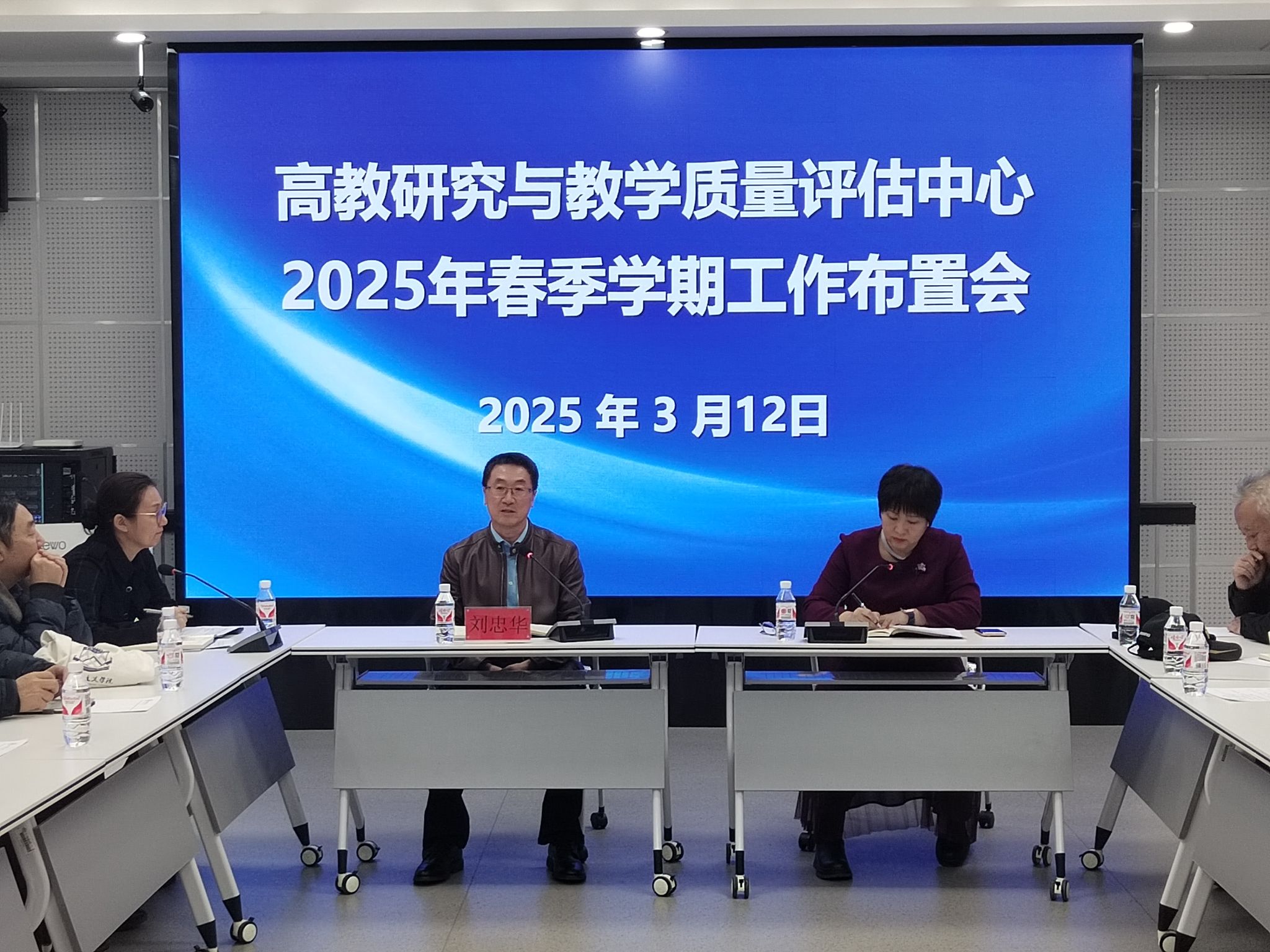 为贯彻学校新学期工作会议精神,全面落实学校党委2025年重点工作任务,提升教学质量保障能力,助力学校高质量发展,3月12日下午,高教研究与教学质量评估中心在834会议室召开2025春季学期工作布置会。副校长刘忠华、全体校级教学督导、评估中心全体工作人员参加会议。会议由评估中心主任黄嘉鑫主持。