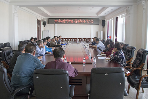 5月3日下午,我校本科教学督导聘任大会在主楼604举行。包军校长出席会议,教学督导组现任督导、新遴选的督学、督导,教学质量评估中心副主任黄嘉鑫、教务处副处长王秀艳及相关工作人员参加会议。会议由教学质量评估中心主任张铁主持。