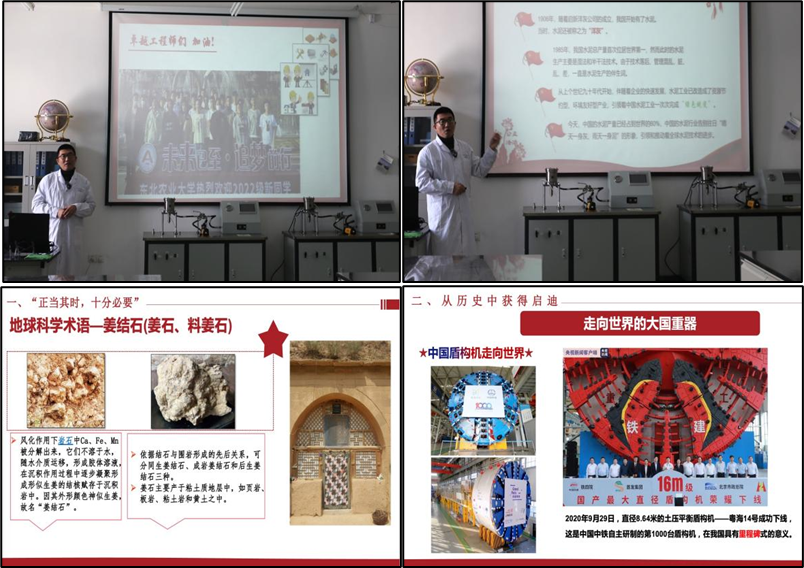 课程注重教学内容与环节设计,白雪峰老师能够整合实验教学知识点,通过线上与线下教学相结合,规划教学内容,创新授课形式,增设动画微课演示、岩石薄片和矿物展示等教学环节,增加了复杂专业知识的生动性。坚持专业知识与价值引领相结合,打造了“1+2+N”课程思政建设模式,将实验课程建设和课程思政建设两个目标协同融合,孕育涵盖多个典型案例的思政教学共享平台。以课程为载体,发挥学生主体地位,聚焦时事、紧扣专业、贴近生活,采用启发式、案例式、研讨式等教学方法,构建“有热度、有高度、有温度”的思政教学模式和具有卓越工程师培养特色以及“大思政”育人格局的实验育人教学体系。