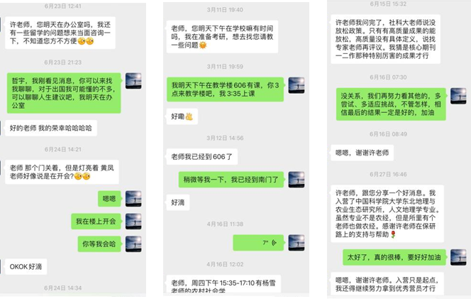 农林2181、2101、2102班皆为大三学生,正处于人生的岔路口,面临选择时会感到迷茫。农林2181班是本硕博连读班,学生们大多会选择留在本校或前往外校完成硕士和博士学业。农林2101班和2102班的学生保研率约为8%,其他学生面临的选择更为多元。他常常在课堂上鼓励学生依据自身兴趣选择未来职业,若有机会继续深造一定要牢牢把握。学生们十分信任他这个“大朋友”,他们愿意与老师交流自己的想法,也乐于同老师分享成功时的喜悦。