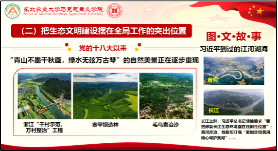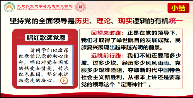 《习近平新时代中国特色社会主义思想概论》作为“调整创新思政课程体系”的重要举措,是高校本科生必修的思想政治理论课之一。东北农业大学马克思主义学院作为黑龙江省首批开设《习近平新时代中国特色社会主义思想概论》课程的试点院校,于2020年9月开课至今,在省教育厅、学校和学院的领导下,课程教学顺利开展,课程建设稳步推进,教学效果得到了各级督导专家和广大学生的一致好评。