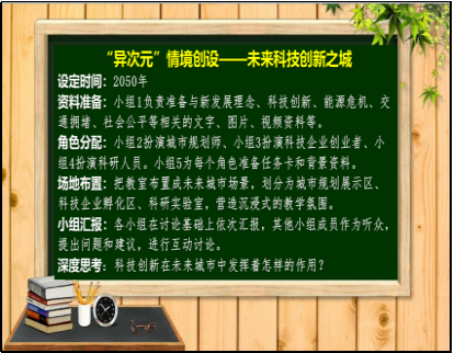小组代表展示“未来科技创新之城”研讨方案并分享情境体验的感受与收获